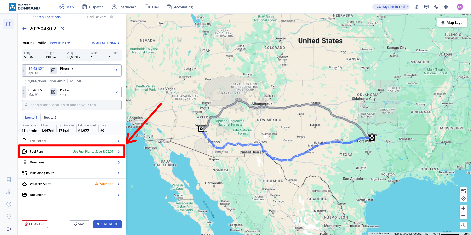 Fuel Optimization can be done from either the Trucker Path dashboard or the driver can do this when they are setting up their trip in the app.